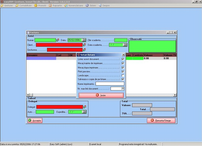 easyERP è un programma fatto da molti moduli, ogni modulo è stato progettato per una specifica divisione da una società. Il programma è un programma client-server, utilizza un database di SQL Server (MSSQL o MSDE), allo stesso tempo in grado di lavorare molti utenti. Le necessità hardware sul lato client sono poveri. È possibile specificare i documenti e le relazioni accessibili con un utente. Il modulo di gestione delle scorte a conservare la prova disponibile il prezzo di acquisizione, i pagamenti e dei redditi sono fatti sulle fatture rispettivamente ricevimenti. Nel caso in cui effettuare le vendite di pacchi postali il programma genererà tutti i documenti necessari per l'agenzia postale. Anche in questo modulo è possibile inserire gli ordini da voi clienti su cui il programma genererà le fatture con i prodotti che saranno venduti al cliente. Il modulo promozioni sono integrati con il modulo di gestione delle scorte. La loro è di tre tipi di promozione: quantitativa, valore e bonus. Le decisioni di promozione sono attivi nel sistema costituiscono un periodo di tempo, e il modulo di gestione delle scorte automaticamente ti suggerisce i prodotti, le quantità ei prezzi di conseguenza per la promozione attiva corrente..