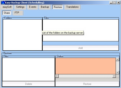 easyBackup è un piccolo programma che hanno per essere installato su ogni computer da cui si desidera eseguire il backup dei file, in un file server o una condivisione nella rete. Dopo l'installazione li hai configurato in base alle proprie necessità. È necessario specificare le directory che saranno monitorati dal programma, i tipi di file che verranno monitorati, l'indirizzo del server FTP o il percorso di condivisione e il nome in cui il file viene salvato e les un lavoro che effettivamente copiare i file. Il programma non mancherà di tenere la prova nel tempo dei file, quindi se si sovrascrive i file che sarà in grado di eseguire il backup di una versione precedente del file. Il programma dispone di un interfaccia multi lingua (Romania e inglese) e possono fare 3 tipi di backup che possono essere combinati in tempo, per soddisfare tutte le vostre esigenze..