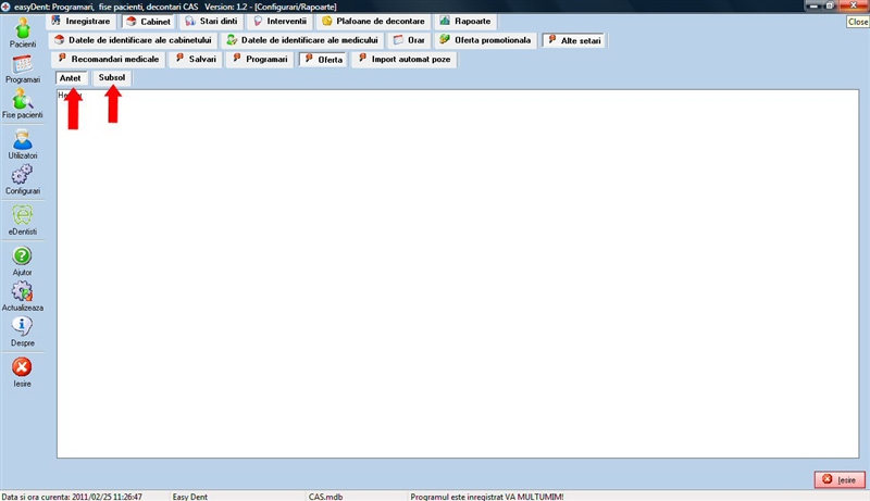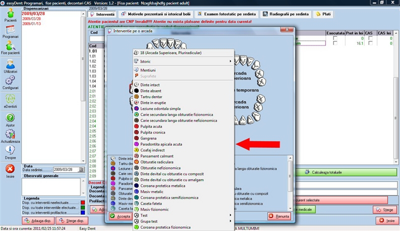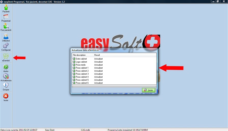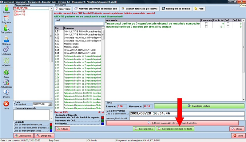 easyDent is a program for dental cabinets. You can define many cabinets in the program and in every cabinet you can have many doctors. With the program you can manage your patients, the interventions made for a patient and the patients with liabilities. For every intervention you can set the price and the cost of the intervention, so you can see the profits in a time period. In the program you can configure for types of interventions, each intervention can be restricted to some doctors according to their specializations and toxicity authorization. The program can generate the electronic reports for CAS. The program has a scheduling section in which you ca easily program your pacients..