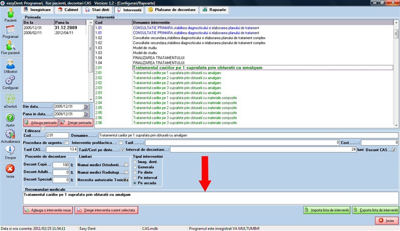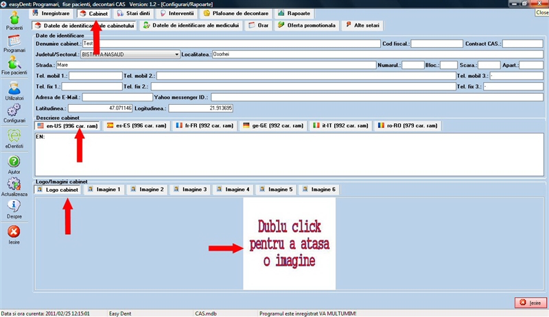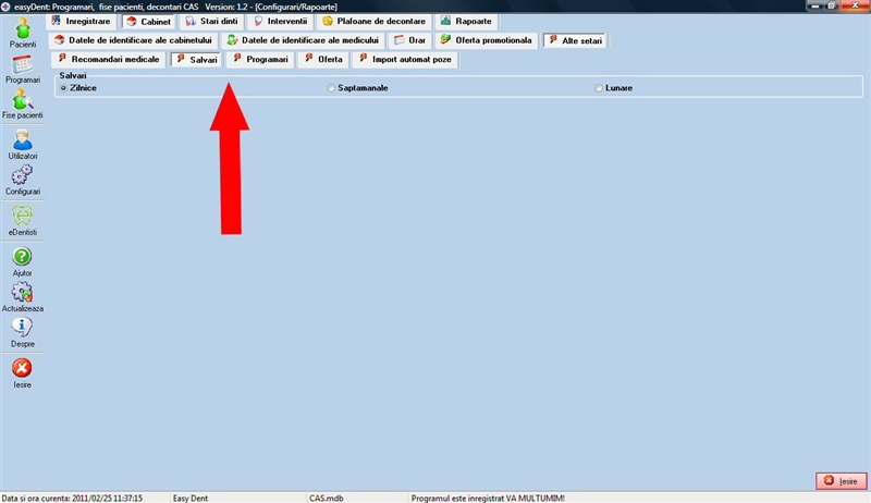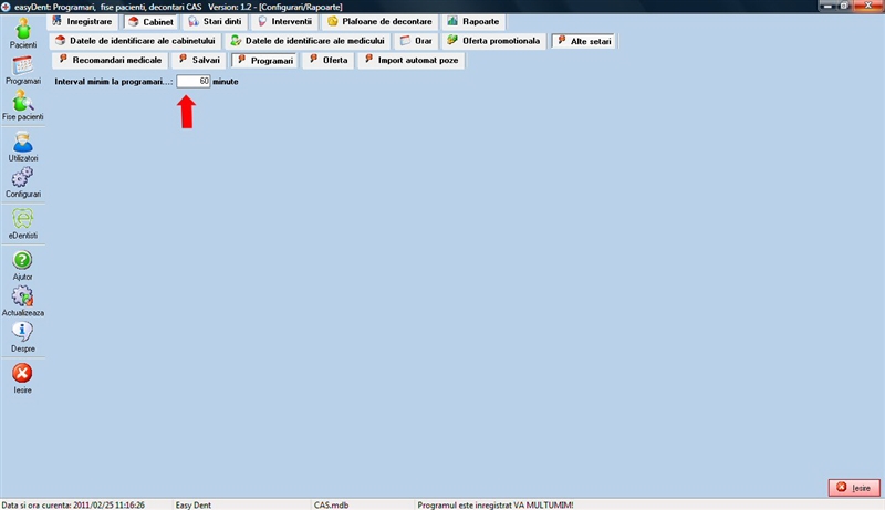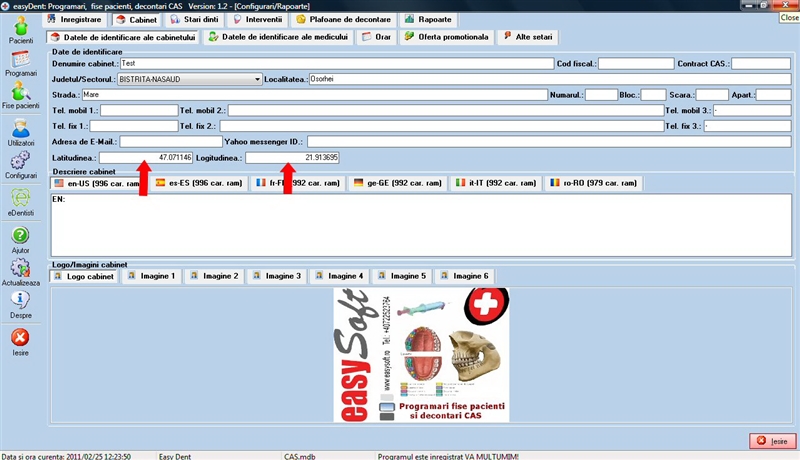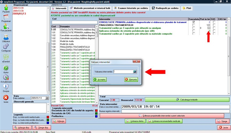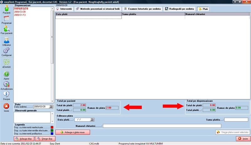easyDent est un programme pour les armoires dentaires. Vous pouvez définir plusieurs armoires dans le programme et dans chaque armoire, vous pouvez avoir de nombreux médecins. Avec le programme vous permet de gérer vos patients, les interventions faites pour un patient et les patients avec un passif. Pour chaque intervention, vous pouvez fixer le prix et le coût de l'intervention, de sorte que vous pouvez voir les bénéfices dans une période de temps. Dans le programme, vous pouvez configurer les types d'interventions, chaque intervention peut être limitée à certains médecins en fonction de leurs spécialisations et d'autorisation toxicité. Le programme peut générer des rapports électroniques pour CAS. Le programme comporte une section de programmation dans lequel vous ca facilement programmer vos pacients..